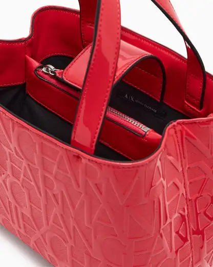 The AX Crossbody Bag from Armani Exchange is designed for those who seek a perfect balance between high-fashion aesthetics and professional utility. This structured mini tote stands out with its defined rectangular shape and the iconic ARMANI EXCHANGE logo embossed across the entire surface. Whether carried by hand or worn across the body, it adds an instant touch of Italian-inspired luxury to your look.