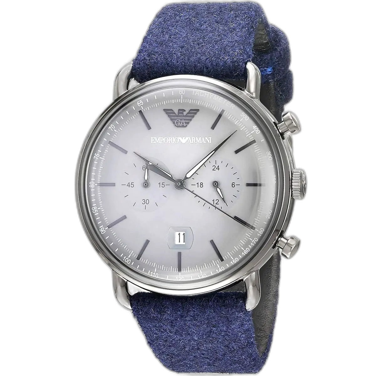 Add a touch of sporty elegance to your collection with this original Emporio Armani men’s watch, model (Aviator) AR11144. This unique timepiece features a stylish grey dial complemented by a comfortable and durable blue fabric strap, offering a perfect blend of modern design and functionality.