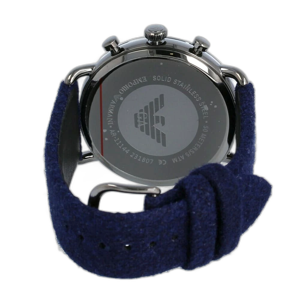 Discover the perfect accessory for the modern man with the Emporio Armani Aviator AR11144 watch, a standout piece that merges sophisticated design with a sporty feel. Renowned for its impeccable craftsmanship, the Emporio Armani brand delivers a timepiece that is both visually striking and highly reliable. The captivating grey dial is housed in a durable stainless steel case, while the vibrant blue fabric strap provides a comfortable fit and a pop of color, making it an ideal choice for both casual and active lifestyles. Water-resistant up to 50 meters, this watch can easily handle daily wear and light water activities.