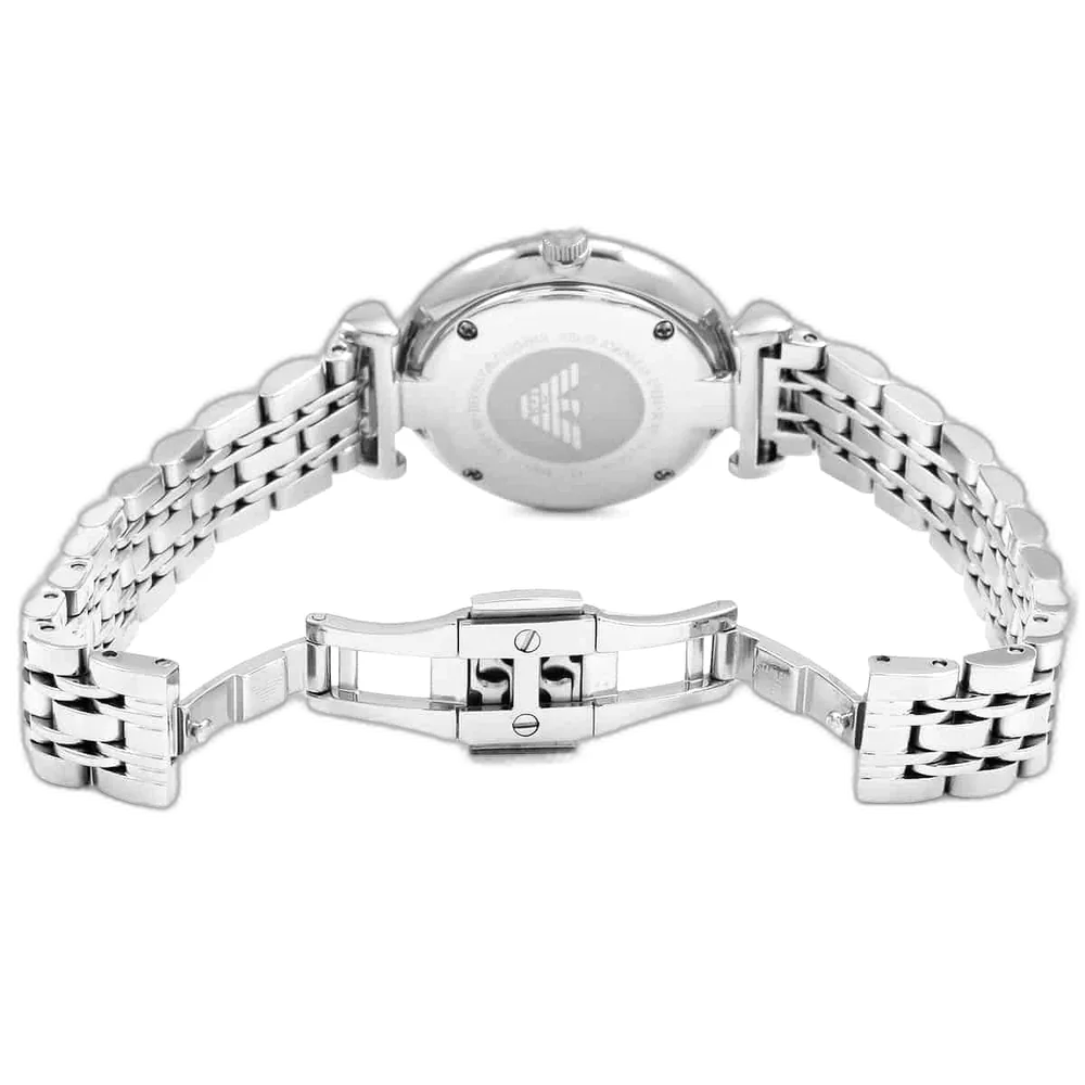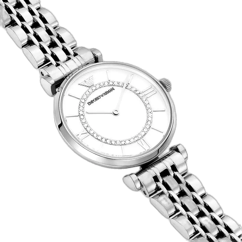 Embrace timeless elegance with this original Emporio Armani watch for women, model (Gianni T-Bar) AR1908. This authentic timepiece features a sleek white dial and a classic silver-toned stainless steel strap, creating a delicate and sophisticated accessory perfect for any occasion.