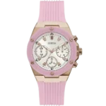 As a content expert, I introduce the Guess Athena GW0030L4 Watch—a standout accessory designed for the fashion-forward individual. This model takes the classic multi-function Athena design and infuses it with a vibrant, playful energy. The striking contrast between the soft pink silicone strap and the rich, polished rose gold-tone case makes this watch a true fashion statement, embodying the “Sport Meets Glam” aesthetic of the Guess brand.