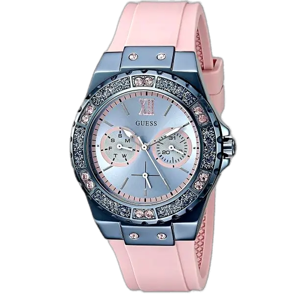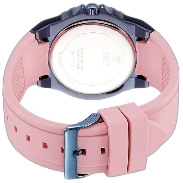 A key defining feature of the Guess Limelight W0775L5 is its pink silicone (rubber) strap. The strap is not only bold and trendy but also offers superior comfort and flexibility, making it ideal for all-day wear and active lifestyles. The secure buckle clasp guarantees a perfect fit for any wrist.