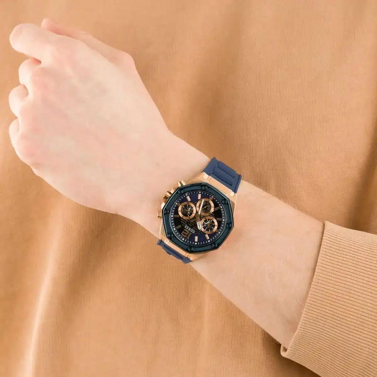 Embrace the striking blue intensity of the Guess Momentum GW0263G2. Its oversized, all-blue design is built for modern trendsetters. Order this authentic Guess watch from Aurenzo today.