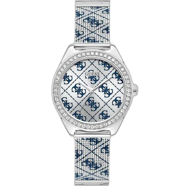 • Distinctive Dial: The Silver Dial is subtly detailed with an all-over Guess logo (G) pattern, giving it depth and texture. Simple silver-tone hands complete the minimalist yet refined look.