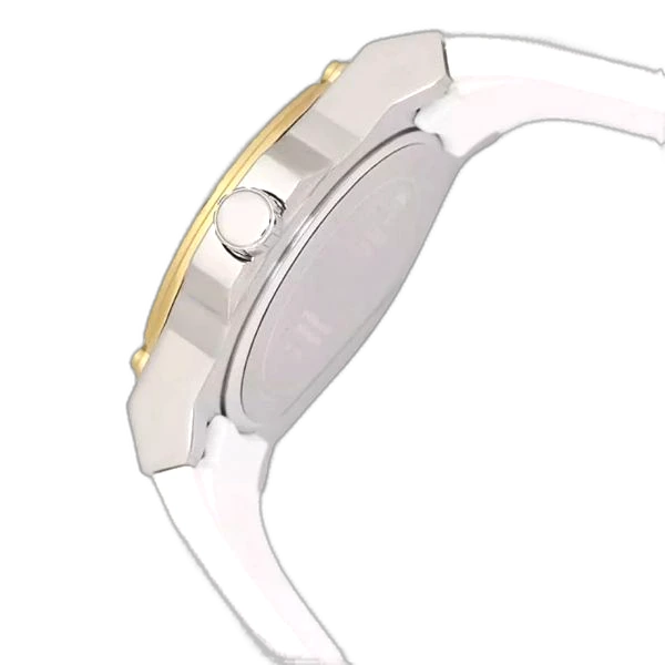 This engaging women’s watch features a classic round case (approx. 39mm) made from stainless steel, often with a gold-tone bezel or plating that contrasts sharply with the predominantly white theme. The true hallmark of this piece is the white silicone rubber strap. The silicone material is highly practical—durable, comfortable, water-resistant (50M WR), and easy to clean, making it an excellent choice for everyday wear. The overall white hue offers an ultimate fresh statement.