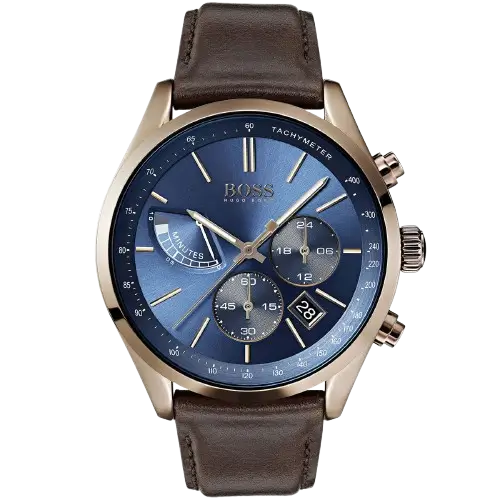 Elevate your dynamic style with the original Hugo Boss men’s chronograph watch, model (Grand Prix) 1513604. This striking timepiece features a vibrant blue dial paired with a premium brown leather strap, blending sporty elegance with high-performance functionality.