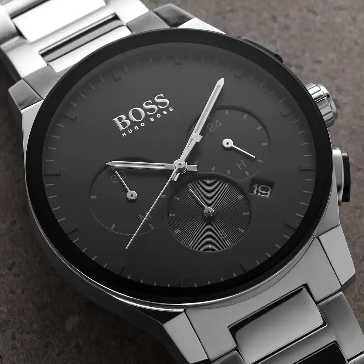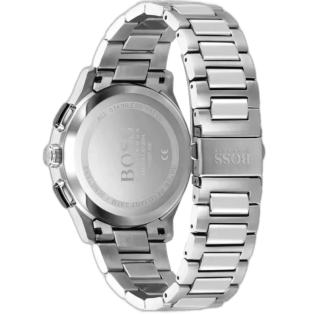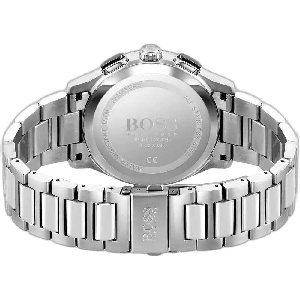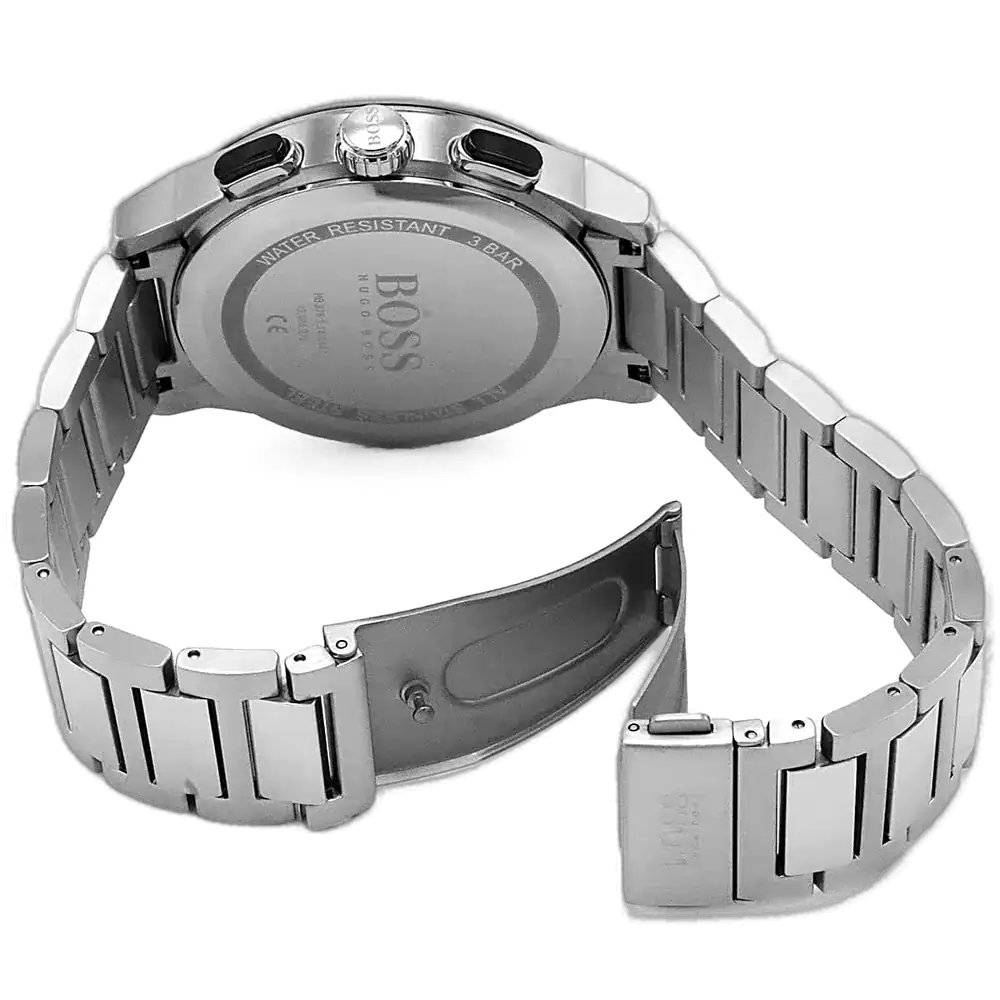 Elevate your modern style with the original Hugo Boss men’s chronograph watch, model (Peak) 1513762. This striking timepiece features a bold black dial paired with a polished silver stainless steel bracelet, blending contemporary luxury with precise functionality.
