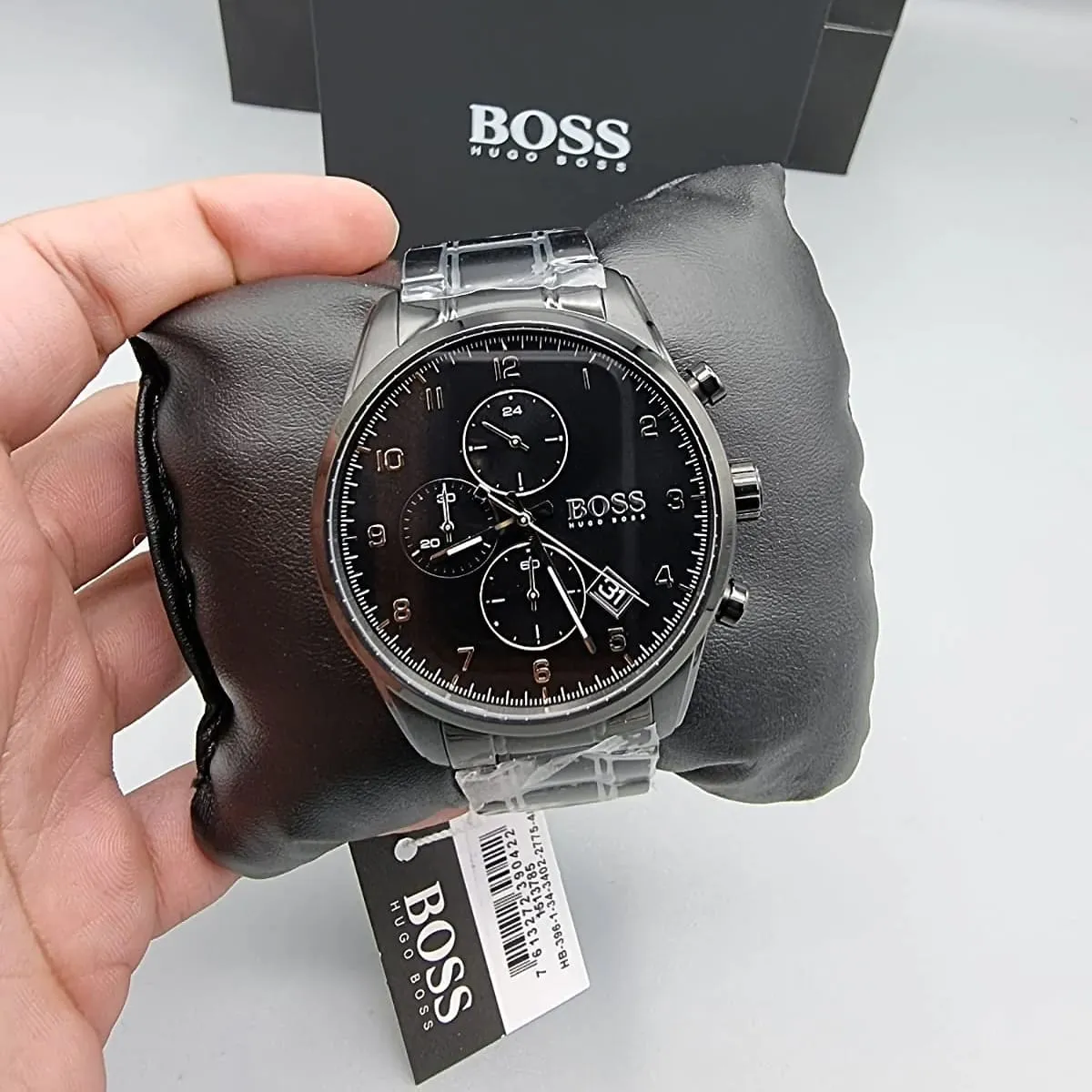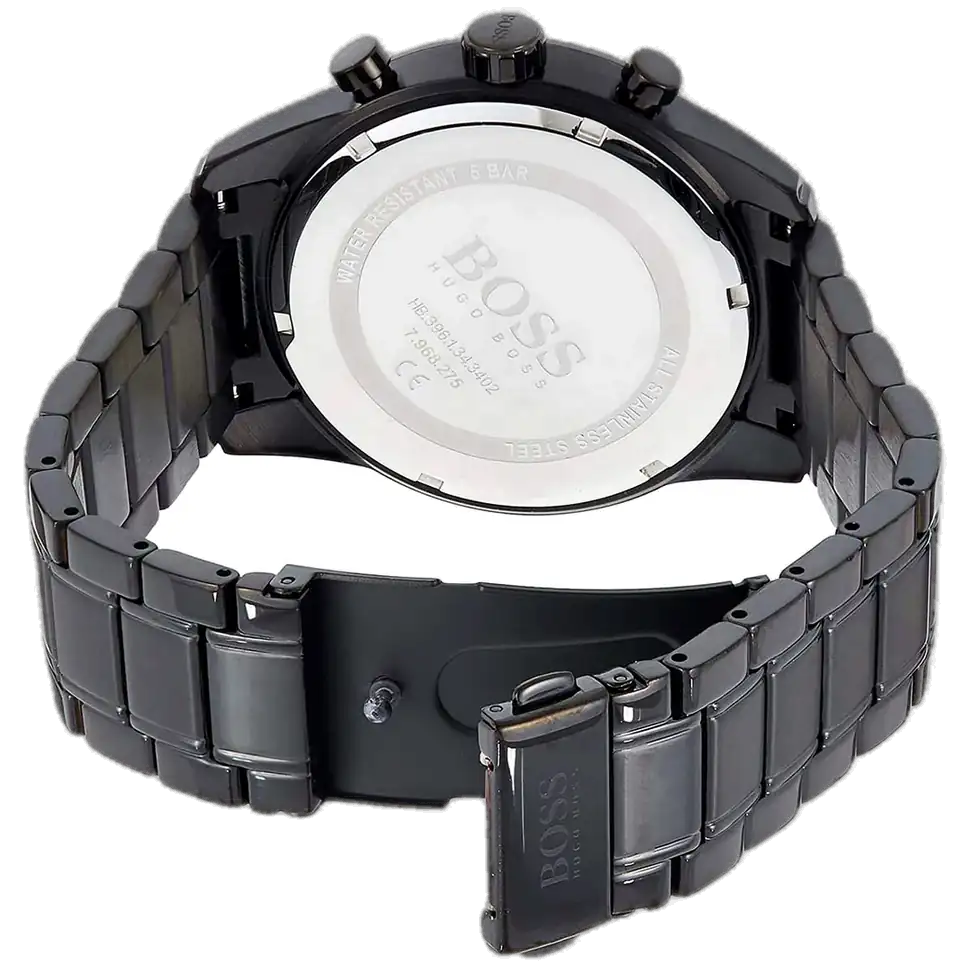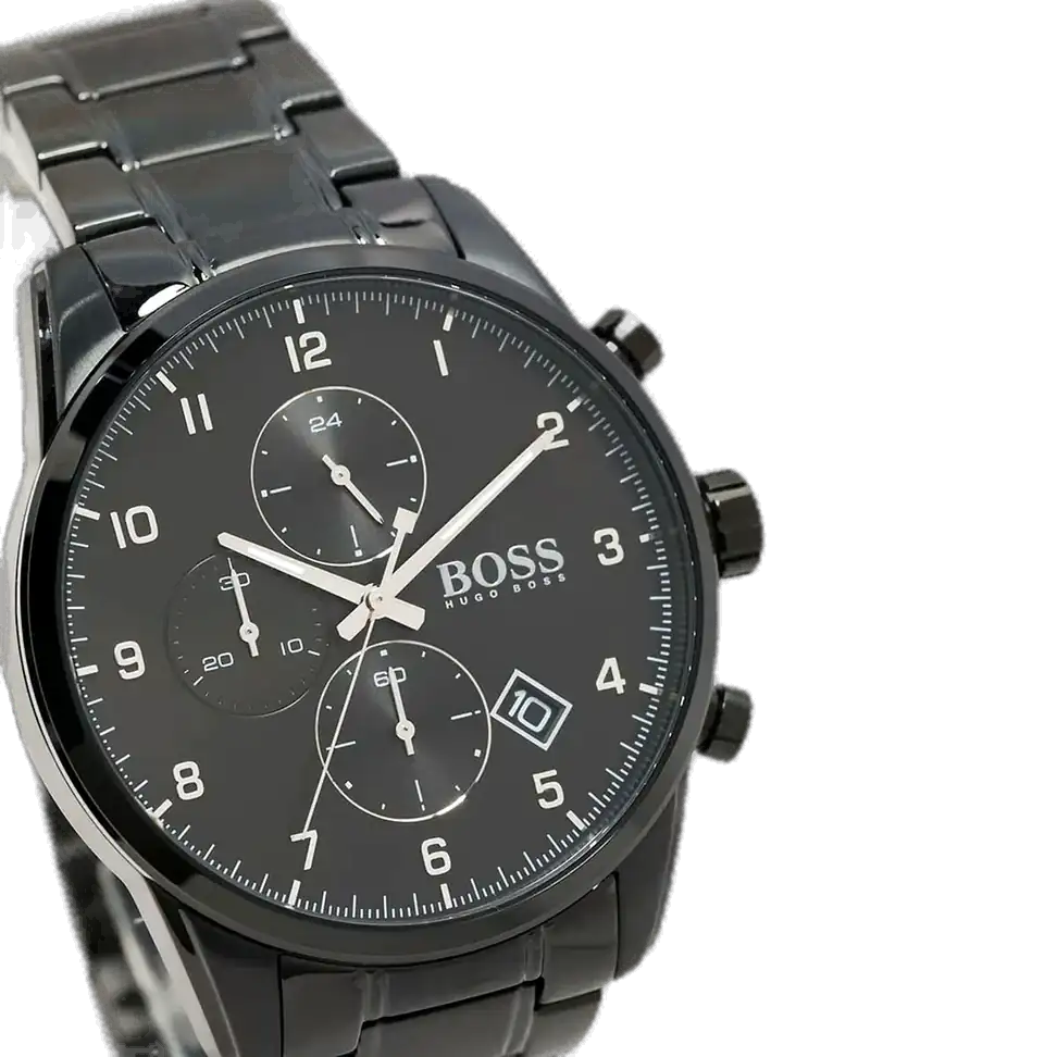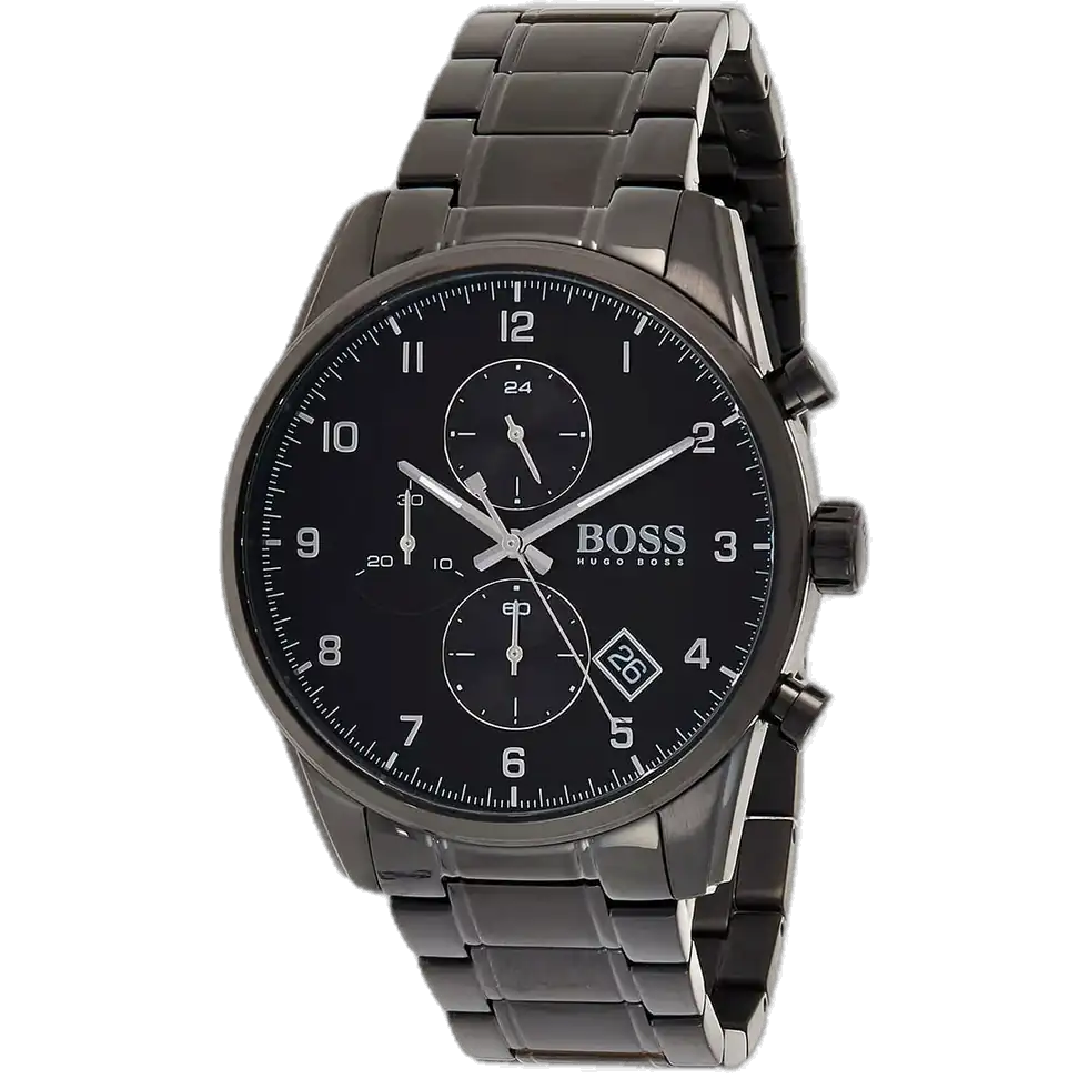 Soar with bold elegance using the original Hugo Boss men’s chronograph watch, model (Skymaster) 1513785. This striking timepiece features a sleek black dial paired with a sophisticated black stainless steel bracelet, blending modern luxury with high-performance functionality.
