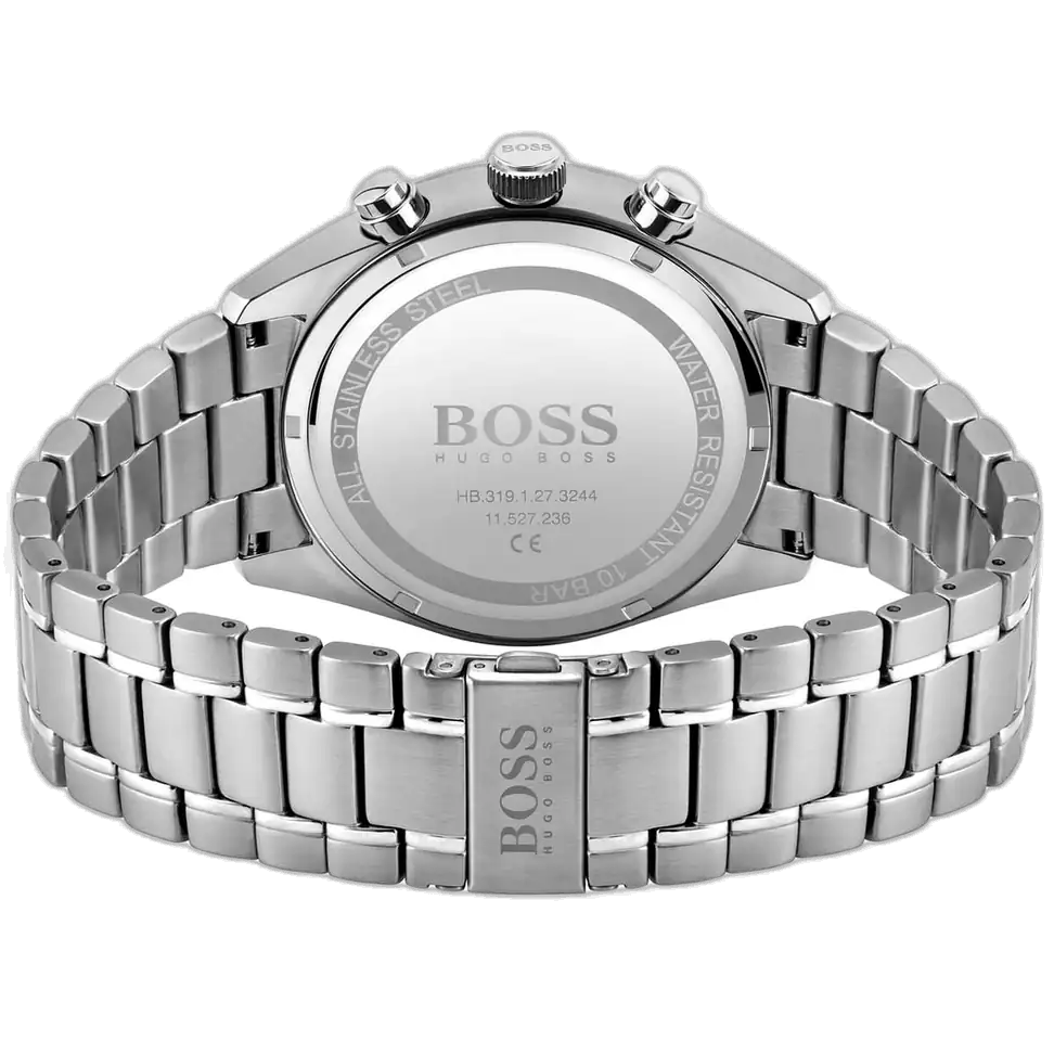 Conquer style with the original Hugo Boss men’s chronograph watch, model (Champion) 1513818. This sophisticated timepiece features a vibrant blue dial paired with a polished silver stainless steel bracelet, blending modern luxury with high-performance functionality.