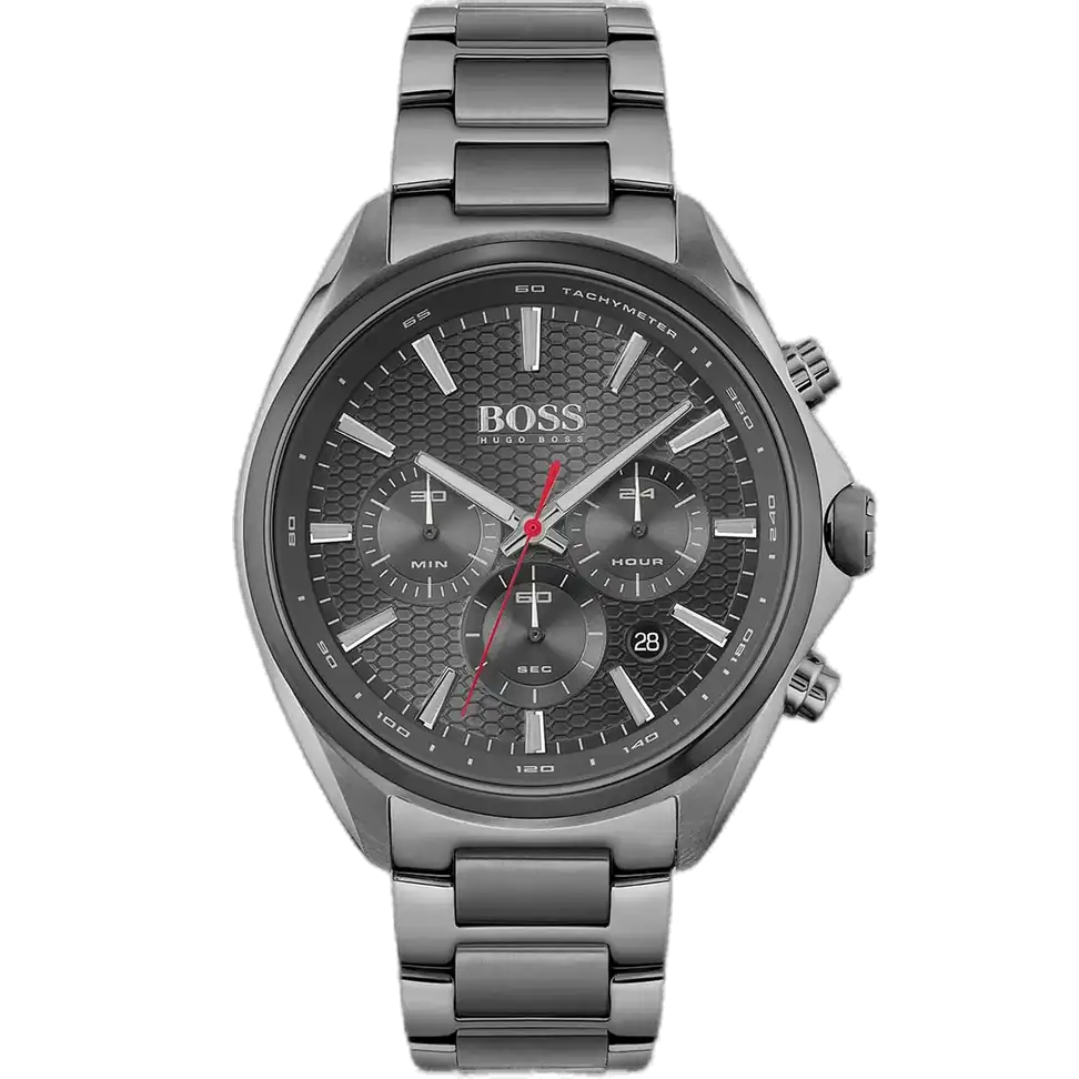 Stand out with the original Hugo Boss men’s chronograph watch, model (Distinct) 1513858. This refined timepiece features a sleek grey dial paired with a matching grey stainless steel bracelet, offering premium quality and style at an affordable price from Aurenzo.