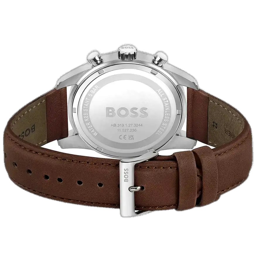 Soar to new heights of style with the original Hugo Boss men’s chronograph watch, model (Skymaster) 1513940. This sophisticated timepiece features a vibrant blue dial paired with a luxurious brown leather strap, offering premium quality and elegance at exceptional value from Aurenzo.
