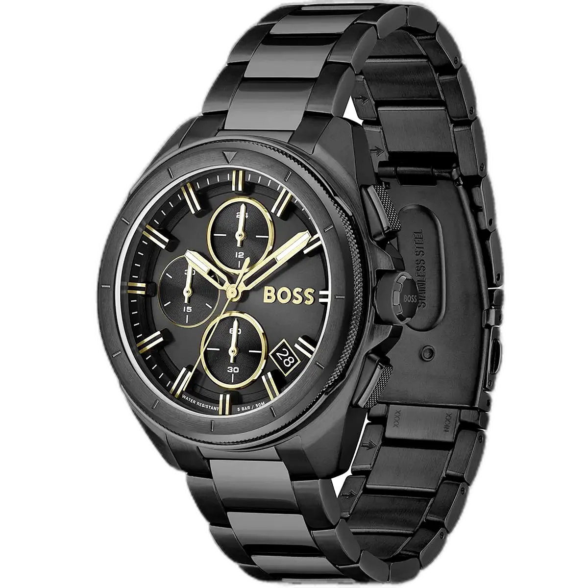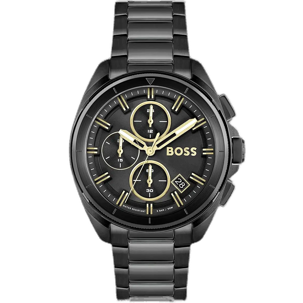 Elevate your bold style with the original Hugo Boss men’s chronograph watch, model (Volane) 1513950. This striking timepiece features a sleek black dial paired with a sophisticated black stainless steel bracelet, blending modern luxury with high-performance functionality.