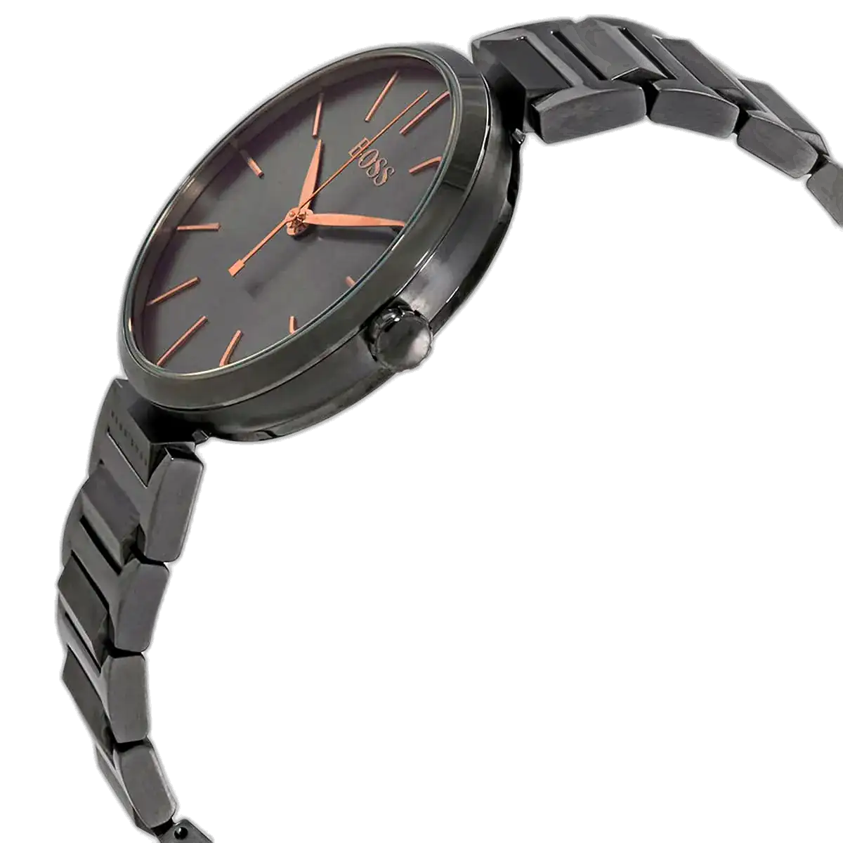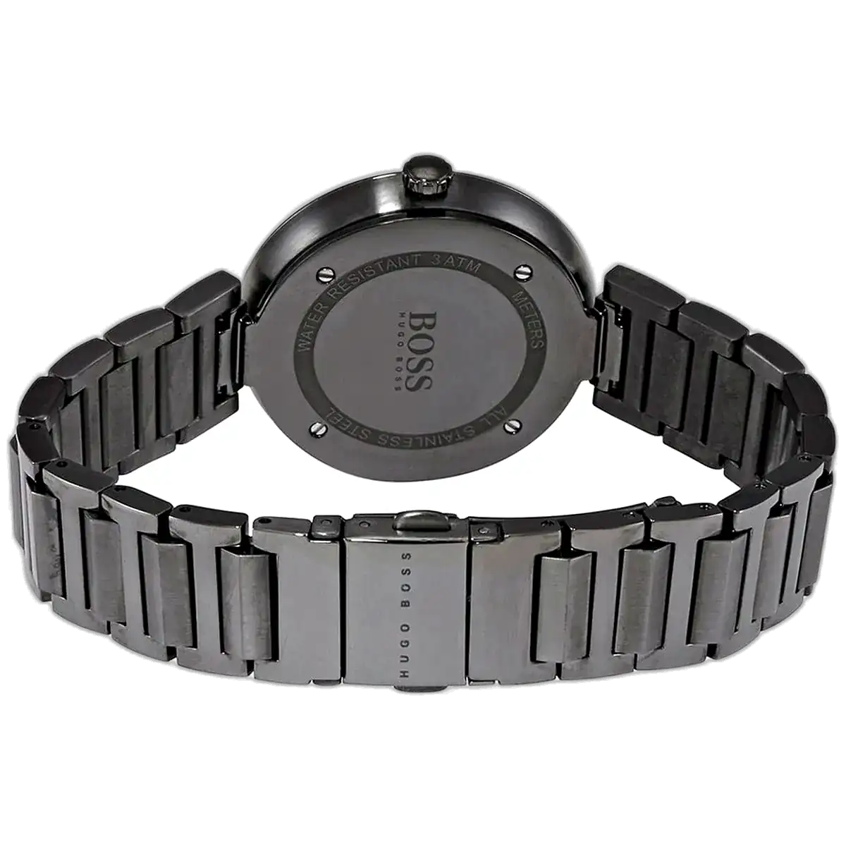 This exquisite Hugo Boss Allusion Gray watch is powered by a reliable quartz movement. Its minimalist design, featuring stick hour markers and simple hands, ensures superb legibility while maintaining a subtle sense of luxury. The integrated gray stainless steel bracelet secures comfortably with a deployment clasp, providing a continuous, polished finish around the wrist.