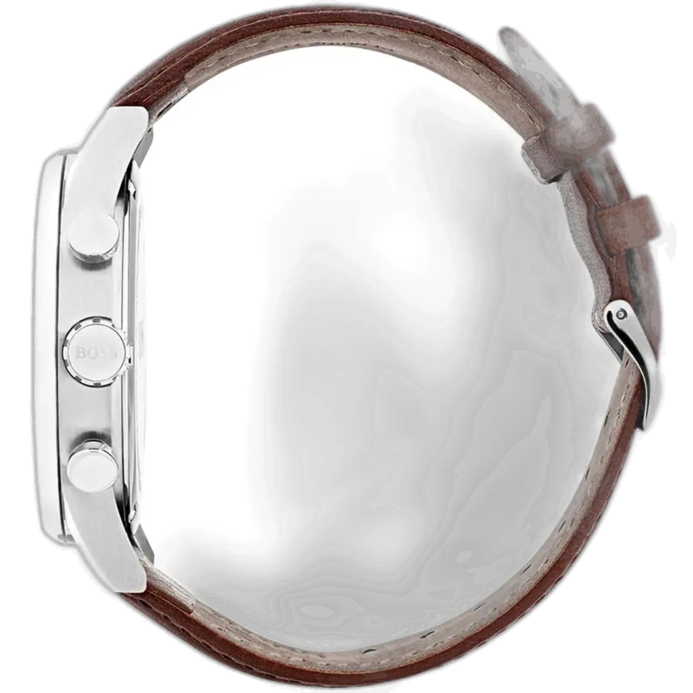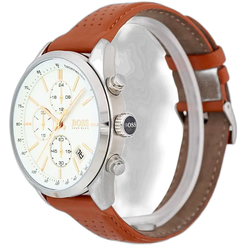 For a darker, more industrial aesthetic in the same collection, explore the grey dial version: Hugo Boss Grand Prix Chronograph Watch For Men – 1513476, With Grey Dial and Brown Leather Strap.