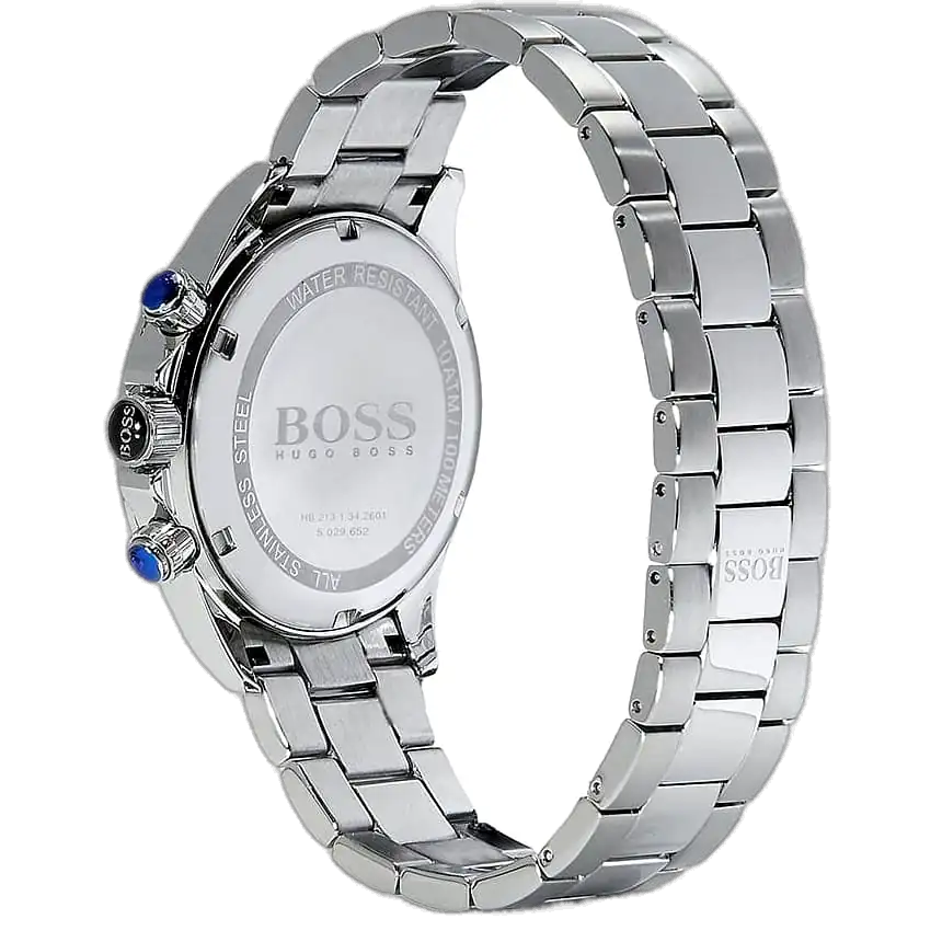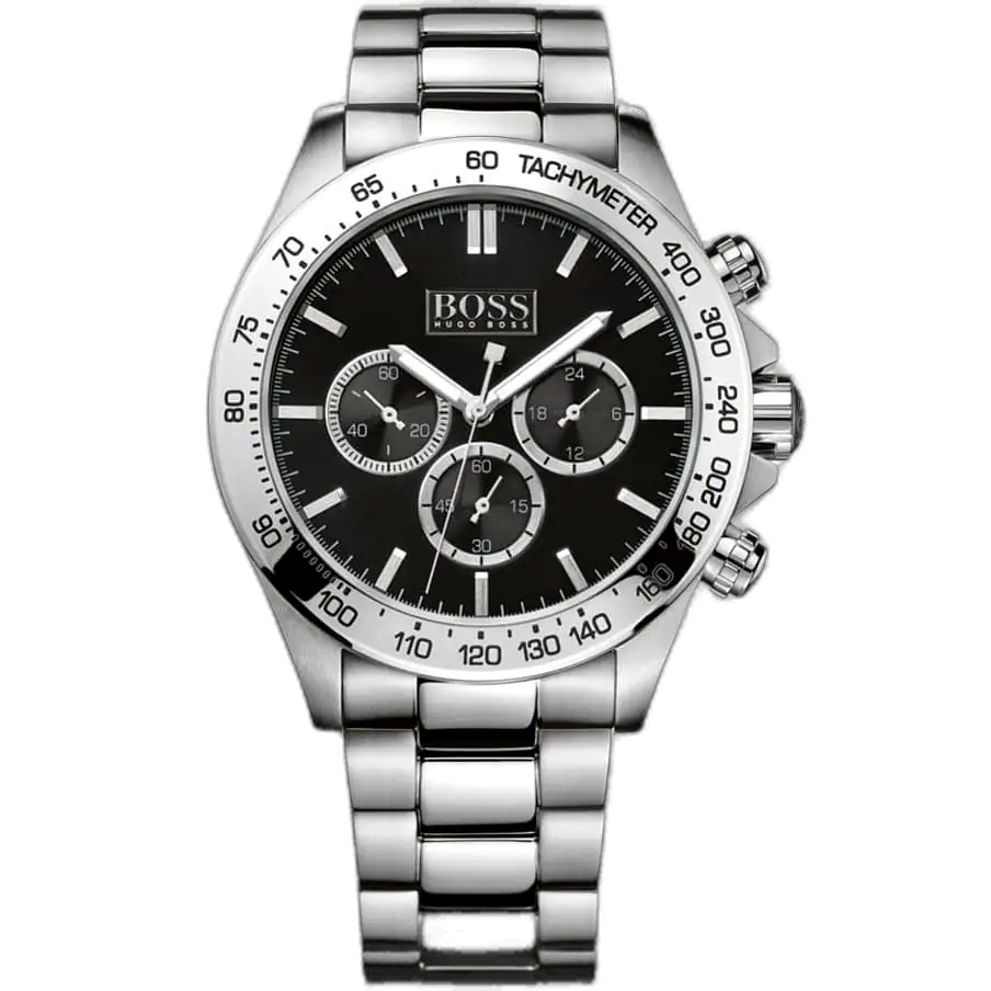The Hugo Boss Ikon 1512965 chronograph watch (Reference HB.213.1.14.2602) is the ultimate accessory for the man who values a timeless, yet powerful aesthetic. This timepiece perfectly captures the blend of German precision and bold design that Hugo Boss is known for. The striking contrast between the deep black dial and the polished silver stainless steel components ensures that the Hugo Boss watch 1512965 stands out, making it an ideal choice for any occasion, from business meetings to weekend adventures.