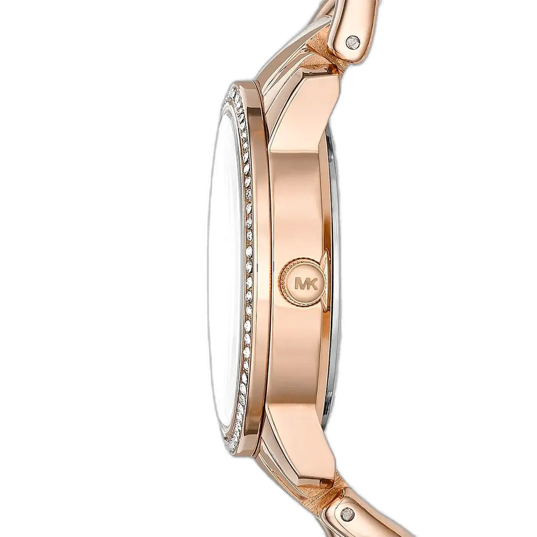 The allure of the MK3236 is its perfect execution of the monochromatic rose gold look in a petite size: