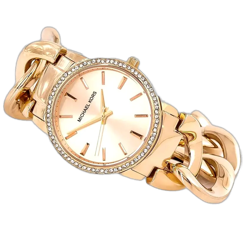 The Michael Kors MK3236 Watch from the Nini collection elegantly merges classic luxury with modern metallic trends. This model is highly coveted for its warm, all-encompassing Rose Gold-Tone (Nuhasi) finish, which gives it a distinctly contemporary flair. The design is beautifully accentuated by a dazzling, continuous band of crystals set into the bezel, ensuring the watch captures attention with its bright sparkle. The MK3236 is crafted for the woman who appreciates the subtlety of a smaller watch profile but desires maximum luxury impact. Its radiant finish and crystal embellishments solidify its status as a piece of everyday jewelry.