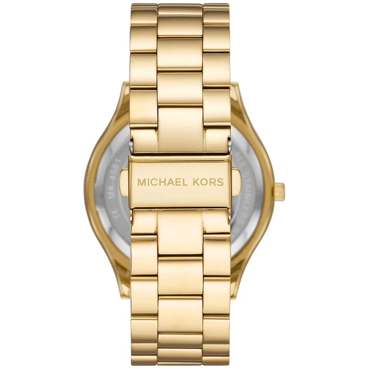 The powerful combination of the sleek profile, the continuous Gold-Tone color, and the rich, patterned tortoiseshell elements makes the MK4561 a truly glamorous and unique luxury statement. The watch maintains a rating of 50 Meters (5 ATM) of water resistance, offering appropriate protection against moisture and splashes, making it a reliable and fashionable daily accessory.