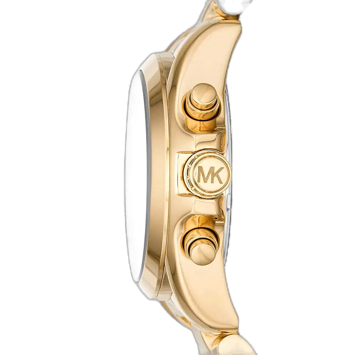 The Michael Kors MK6267 Watch is a definitive accessory for high-impact, opulent style. Its large 43mm oversized profile, rich gold-tone finish, and crisp white chronograph dial establish it as an essential and highly fashionable statement piece in the Bradshaw collection.