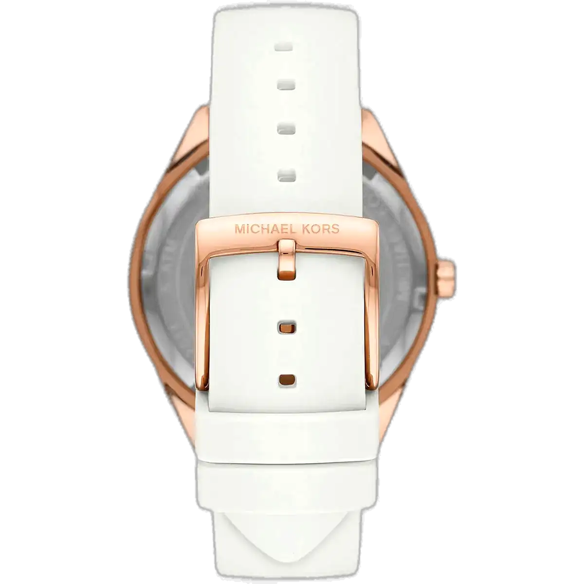 The strap of the Michael Kors MK6945 Watch is its most practical element, providing essential comfort and durability. It is a soft, yet highly robust White Silicone (Polyurethane) Strap. This material is ideal for active wear, as it is water-resistant, easy to clean, and provides a comfortable, light feel on the wrist. The monochromatic white strap enhances the watch’s clean, refreshing aesthetic. For superior practicality, the watch maintains a rating of 50 Meters (5 ATM) of water resistance, offering appropriate protection against moisture and splashes, making it a reliable and versatile accessory for the dynamic woman.