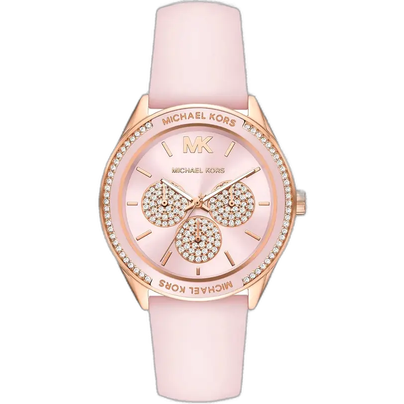 The Michael Kors MK6946 Watch from the Jessa collection is a definitive accessory that boldly fuses femininity with high-fashion glamour. This model is exceptionally desirable for its visually striking monochromatic All-Pink finish, which gives the entire watch a soft, sophisticated, and warm aesthetic. The watch features a luxurious Pink Leather Strap and a case often adorned with brilliant crystals (Pavé), elevating the look from simple activewear to a pure luxury statement. The Michael Kors MK6946 Watch is a Glamorous and Feminine timepiece, meticulously designed for the woman who values delicate style, unique design, and a comfortable, high-impact aesthetic. It serves as a strong, versatile piece suitable for any modern, elegant setting.