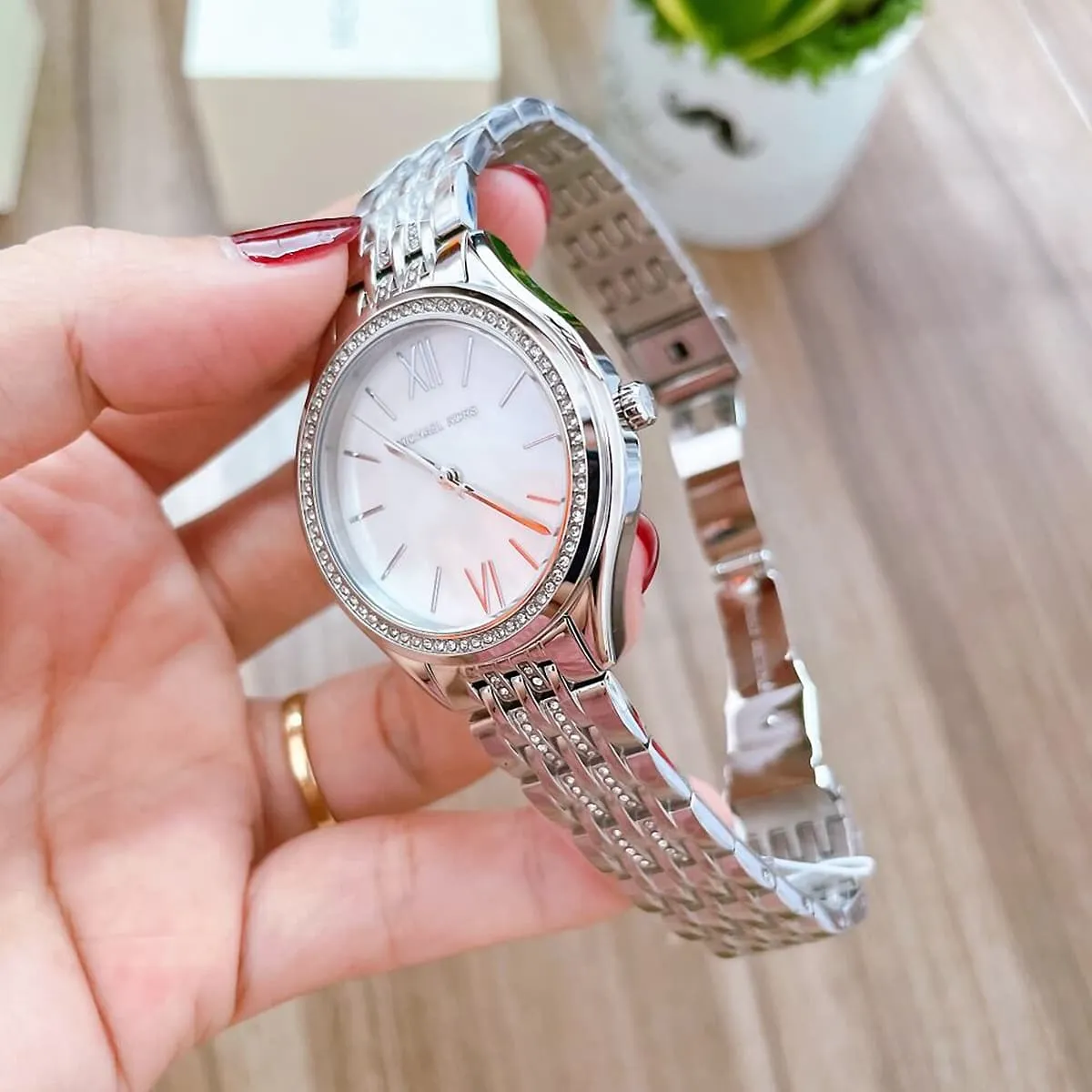 The original Michael Kors MK7075 (Mindy) is a dazzling, all-silver-tone timepiece. This ladies’ watch features a refined 38mm case (approx), a luxurious all-silver-tone stainless steel finish, and a sparkling crystal-set bezel framing a white dial. It’s the perfect accessory for adding a strong, luxurious sparkle to any look. Water resistant up to 5 ATM.