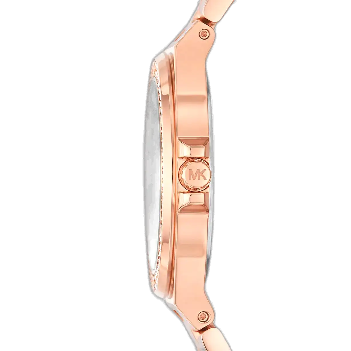 The Michael Kors MK7279 Watch is a definitive accessory for high-impact, bold style. Its chic all-Rose Gold-Tone finish, combined with the signature oversized Lennox profile and sparkling crystal accents, establishes it as an essential and highly fashionable statement piece in the Michael Kors collection.