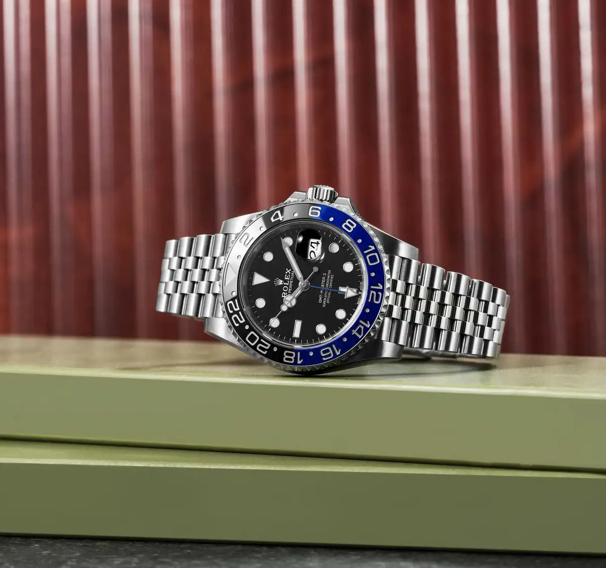 Dual Time Zone Hand: The Rolex GMT-Master II Watch features an iconic extra hand that tracks a second time zone with incredible accuracy and legendary ease.