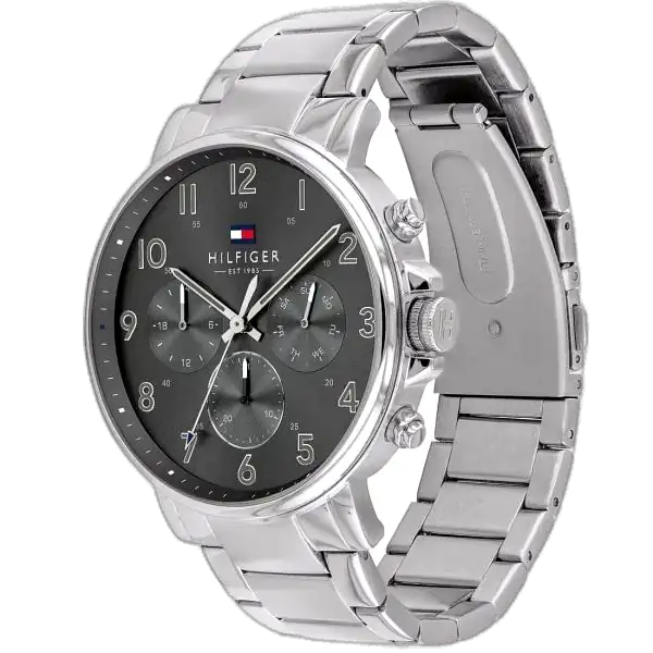 The Tommy Hilfiger Daniel Watch 1710382 is a quintessential expression of refined, smart-casual American style, perfectly capturing the brand’s commitment to clean aesthetics and high functionality. This model is exceptionally desirable for its balanced, cool aesthetic, featuring a sophisticated Grey Dial set within a robust Silver-Tone Stainless Steel Case, and paired with a sleek, matching link bracelet. The Tommy Hilfiger 1710382 Watch is a Stylish and Timeless timepiece, meticulously designed for the modern man who values straightforward features and a clean, cool metallic finish. It serves as an essential daily accessory, offering versatility that works equally well with business attire or casual outfits.
