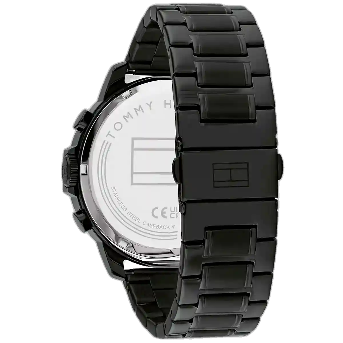 The Tommy Hilfiger 1710494 Watch is a definitive accessory for high-end, sporty style. Its striking all-black aesthetic, combined with the matching steel bracelet and multi-function design, establishes it as an essential and highly fashionable statement piece in the Tommy Hilfiger collection.
