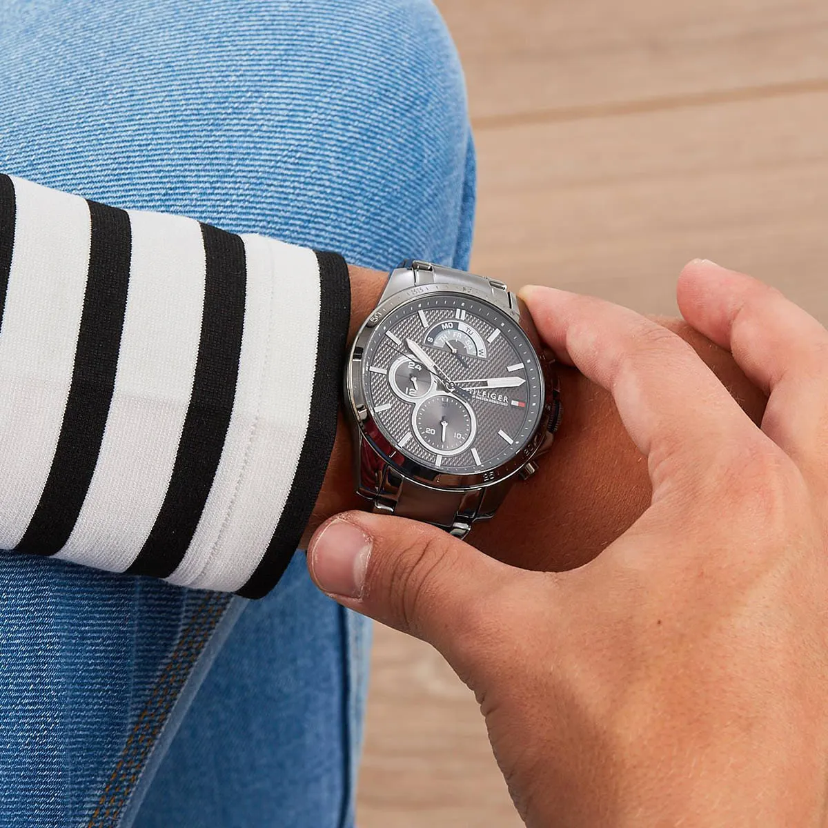 The Tommy Hilfiger 1791347 Watch is built for reliable, precise timekeeping, housing a dependable Quartz Chronograph Movement. This advanced functionality ensures accuracy and practicality for daily life and sports timing. The watch is engineered for dependability; its front face is protected by a durable Mineral Crystal, offering reliable resistance against daily impacts and wear, thus preserving the watch’s Dynamic and robust allure for years to come. The robust stainless steel construction ensures the watch maintains its integrity and commanding appearance over time.