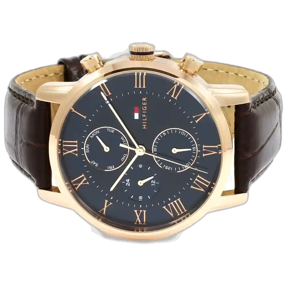 The Tommy Hilfiger 1791399 Watch is a definitive accessory for high-end, distinctive style. Its captivating blue dial, combined with the warm brown leather strap and classic aesthetic, establishes it as an essential and highly fashionable statement piece in the Tommy Hilfiger collection.