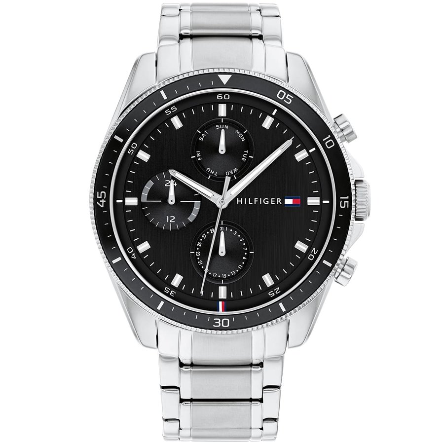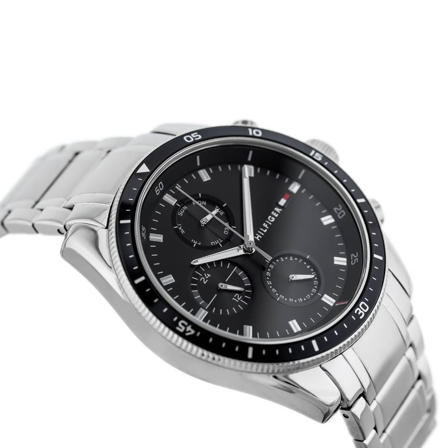 Elevate your style with this original Tommy Hilfiger watch. This authentic timepiece, reference 1791835 (Asher model), features a sleek black dial paired with a silver-tone stainless steel bracelet.