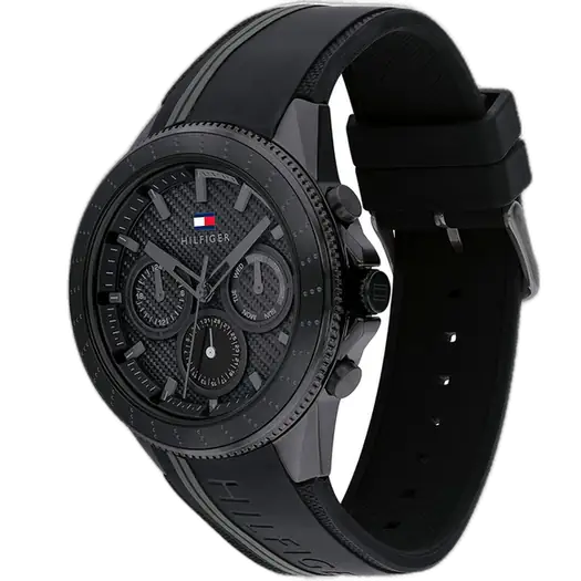 The Tommy Hilfiger 1791861 Watch is a definitive accessory for high-impact, bold style. Its striking all-black aesthetic, combined with the comfortable silicone strap and sleek design, establishes it as an essential and highly fashionable statement piece in the Tommy Hilfiger collection.