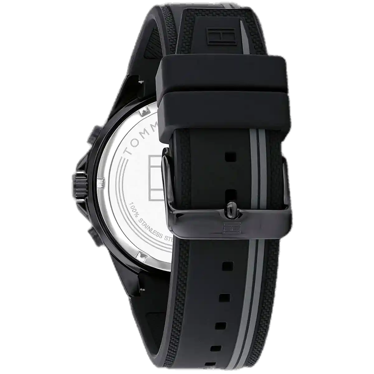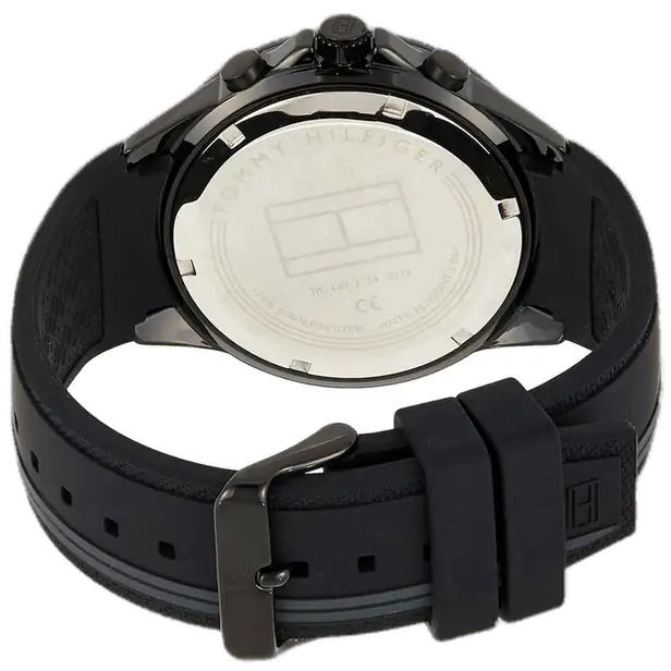 The strap of the Tommy Hilfiger Aiden Watch 1791861 is its key element for comfort and strength. It is a highly robust Black Silicone (Rubber) Strap. This material is ideal for active and sporty wear, as it is water-resistant, easy to clean, and provides a comfortable, light feel on the wrist. The monochromatic black strap perfectly complements the dark case, enhancing the watch’s stealthy aesthetic. The strap secures with a classic buckle clasp. For superior practicality, the watch maintains a rating of 50 Meters (5 ATM) of water resistance, offering appropriate protection against moisture and splashes. The powerful combination of the bold case and the comfortable silicone strap makes the Tommy Hilfiger 1791861 Watch an instantly appealing symbol of functional luxury.