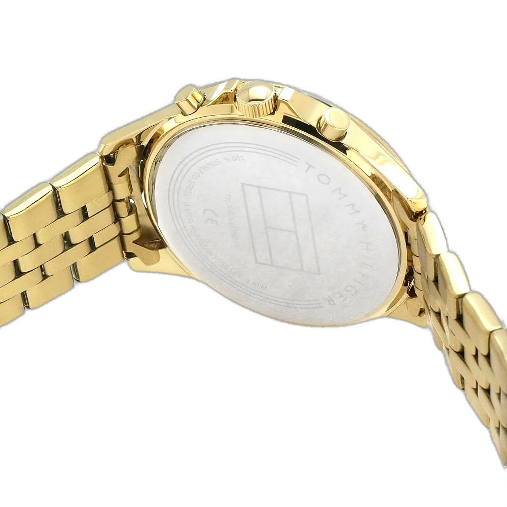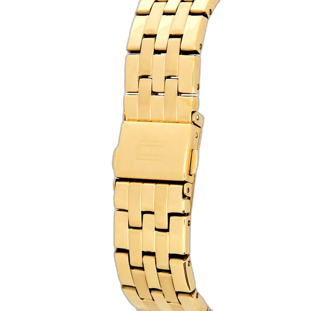 Embrace a timeless, elegant look with this original Tommy Hilfiger watch. This authentic timepiece, reference 1781977 (Ari model), features a clean white dial and a sleek gold-toned stainless steel bracelet.