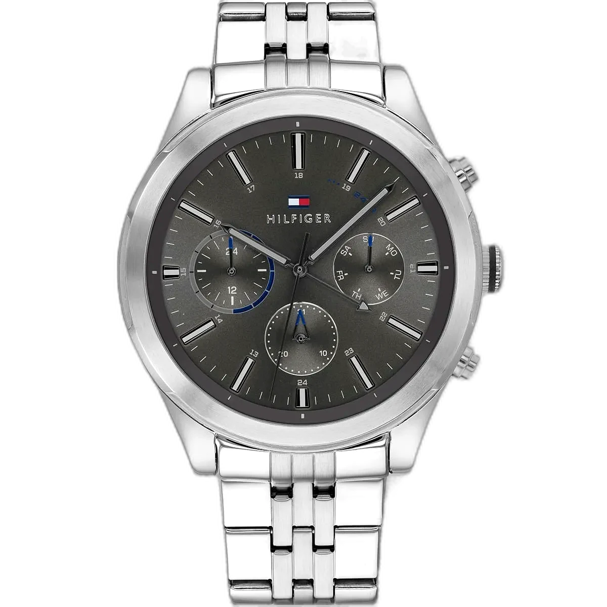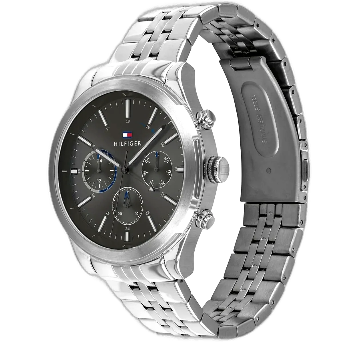 Embrace a modern, sophisticated look with this original Tommy Hilfiger watch. This authentic timepiece, reference 1791737 (Ashton model), features a minimalist gray dial and a classic silver-toned stainless steel strap.