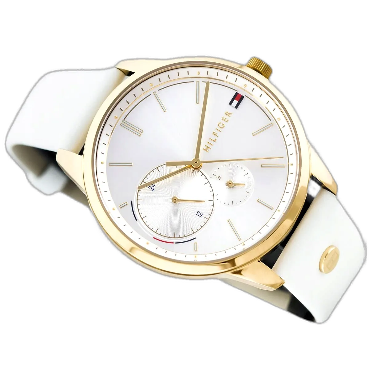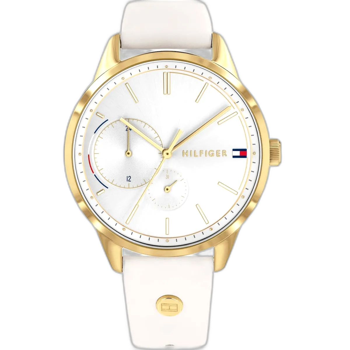 Embrace a classic and timeless look with this original Tommy Hilfiger watch. This authentic timepiece, reference 1782018 (Brooke model), features a clean white dial and a comfortable genuine leather strap in a matching white tone.