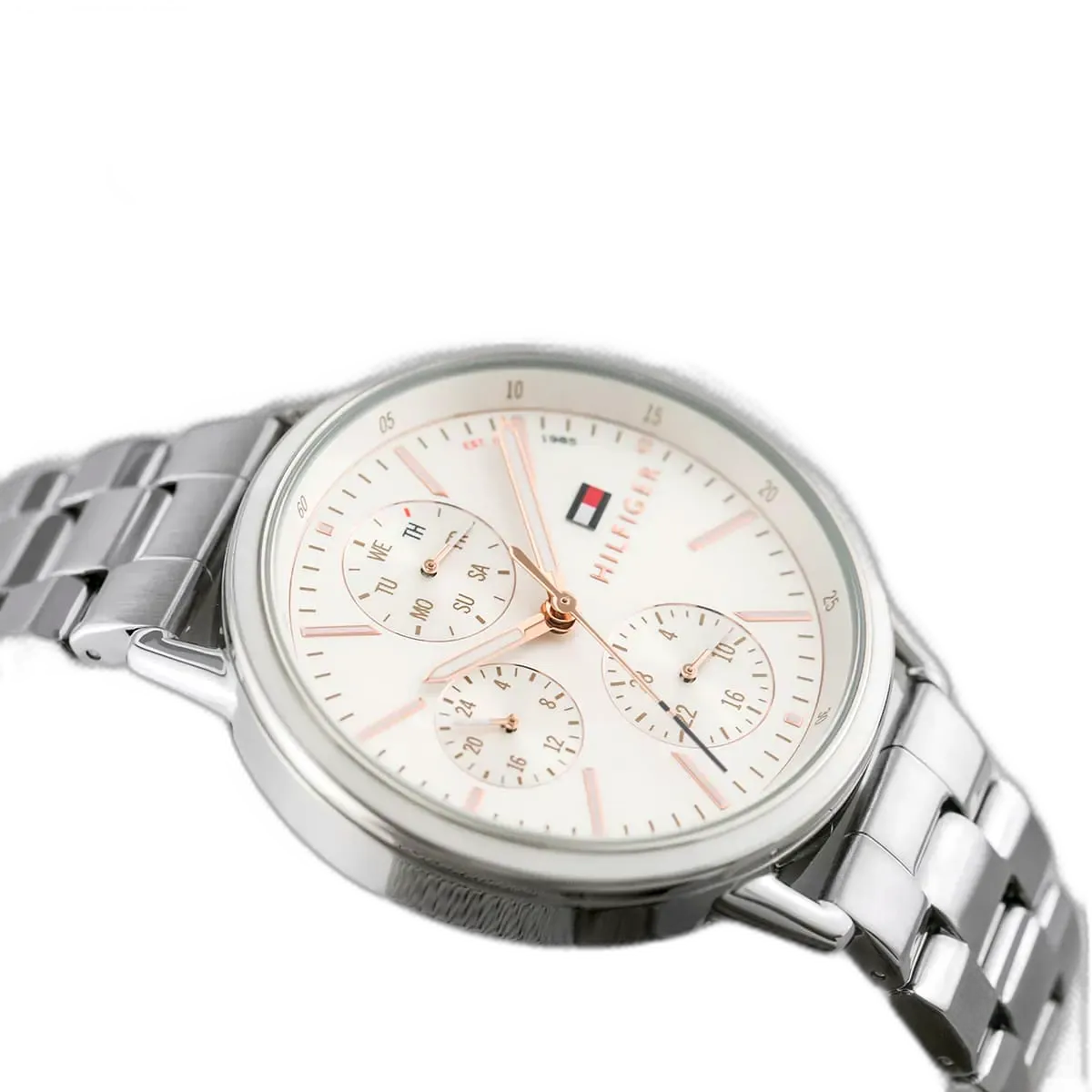 Step into the world of iconic American fashion with the Tommy Hilfiger Carly watch, a perfect blend of modern style and enduring sophistication. Renowned for its high-quality craftsmanship and distinctive designs, Tommy Hilfiger delivers with this authentic watch, reference 1781787 (Factory number TH.324.3.104.2232). With its elegant silver dial and a durable silver-toned stainless steel strap, this monochromatic timepiece offers a refined and versatile look that is ideal for the modern woman who values both style and durability. Its water resistance up to 30 meters means it can handle splashes and brief immersion, though it is not recommended for swimming or showering. The watch features a reliable multi-function quartz movement, adding practical elements to its eye-catching design, making it a perfect companion for both professional and casual settings.