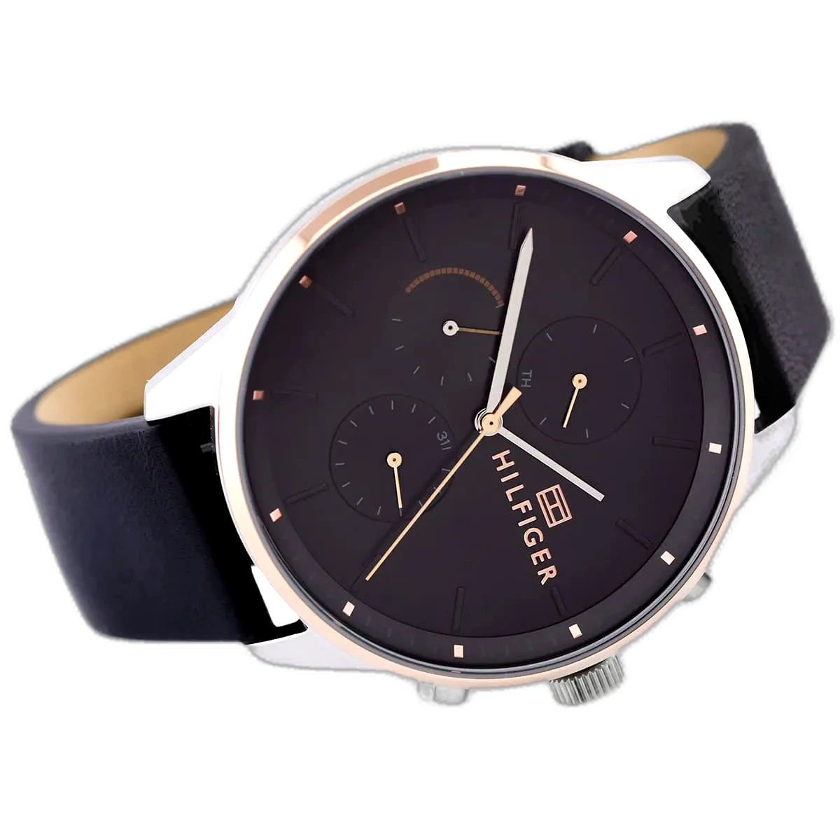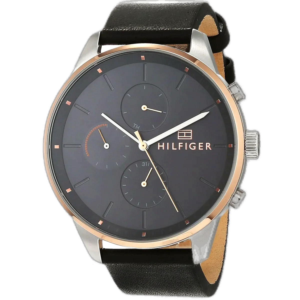 Step into the world of iconic American fashion with the Tommy Hilfiger Chase watch, a perfect blend of modern style and functionality. Renowned for its high-quality craftsmanship and distinctive designs, Tommy Hilfiger delivers with this authentic watch, reference 1791488 (Factory number TH.172.1.20.2424). With its sleek black dial and a timeless black genuine leather strap, this monochromatic timepiece offers a powerful and versatile look that is ideal for the modern man who values both style and durability. Its water resistance up to 50 meters ensures it can handle daily activities, including light swimming, though it is not recommended for deep diving or high-impact water sports. The watch features a multifunction quartz movement with three sub-dials, including day, date, and a 24-hour indicator, adding practicality and elegance to its dynamic design, making it a perfect companion for both professional and casual settings.