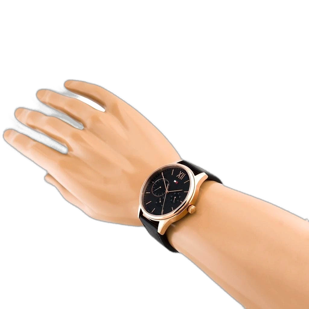 Embrace timeless style with this original Tommy Hilfiger watch. This authentic timepiece, reference 1791419 (Damon model), features a sophisticated black dial and a classic black genuine leather strap.