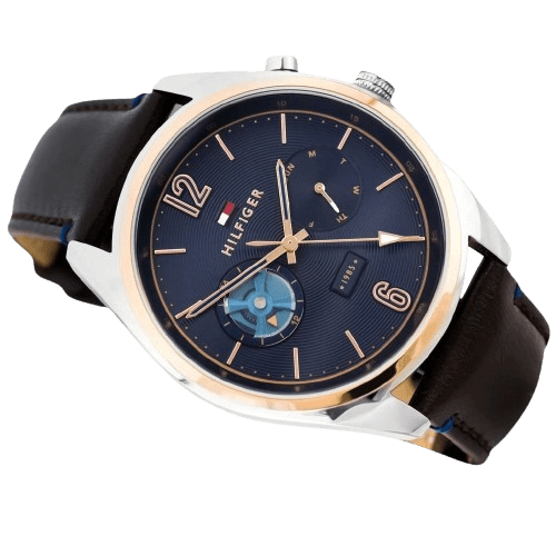 Step into the world of iconic American fashion with the Tommy Hilfiger Deacan watch, a perfect blend of timeless style and functionality. Renowned for its high-quality craftsmanship and distinctive designs, Tommy Hilfiger delivers with this authentic watch, reference 1791549 (Factory number TH.360.1.20.2523). With its sleek blue dial and a classic brown genuine leather strap, this timepiece offers a bold yet versatile look that is ideal for the modern man who values both style and durability. Its water resistance up to 50 meters ensures it can handle daily activities, including light swimming, though it is not recommended for deep diving or high-impact water sports. The watch features a multifunction quartz movement with three sub-dials, including day, date, and a 24-hour indicator, adding practicality and elegance to its dynamic design, making it a perfect companion for both professional and casual settings.