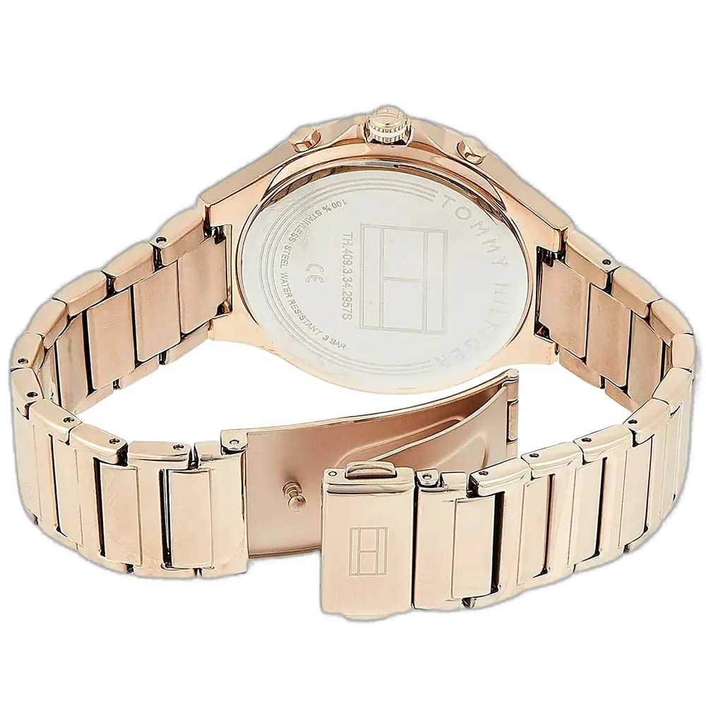 Embrace a sleek, modern, and elegant look with this original Tommy Hilfiger watch. This authentic timepiece, reference 1782277 (Eve model), features a sophisticated gray dial and a polished rose gold-toned stainless steel bracelet.