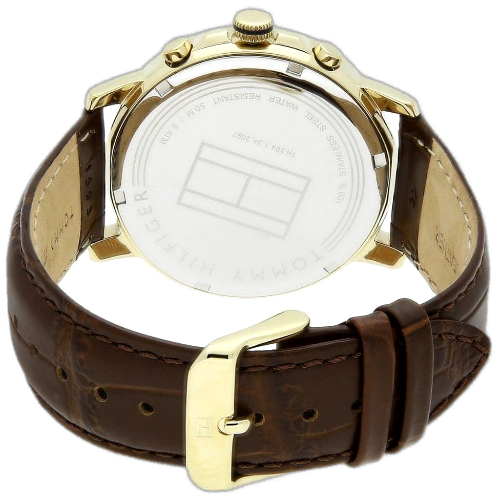 Step into the world of iconic American fashion with the Tommy Hilfiger Keagan watch, a perfect blend of classic elegance and modern sophistication. Renowned for its high-quality craftsmanship and distinctive designs, Tommy Hilfiger delivers with this authentic watch, reference 1791291 (Factory number TH.304.1.34.2097). With its classic silver dial and rich brown genuine leather strap, this timepiece offers a bold and versatile look that is ideal for the modern man who values style and functionality. Its water resistance up to 50 meters ensures it can handle everyday activities, including light swimming, though it is not recommended for deep diving or high-impact water sports. The watch features a multifunction quartz movement with three sub-dials, including day, date, and a 24-hour indicator, adding practicality and elegance to its dynamic design, making it a perfect companion for both professional and casual settings.