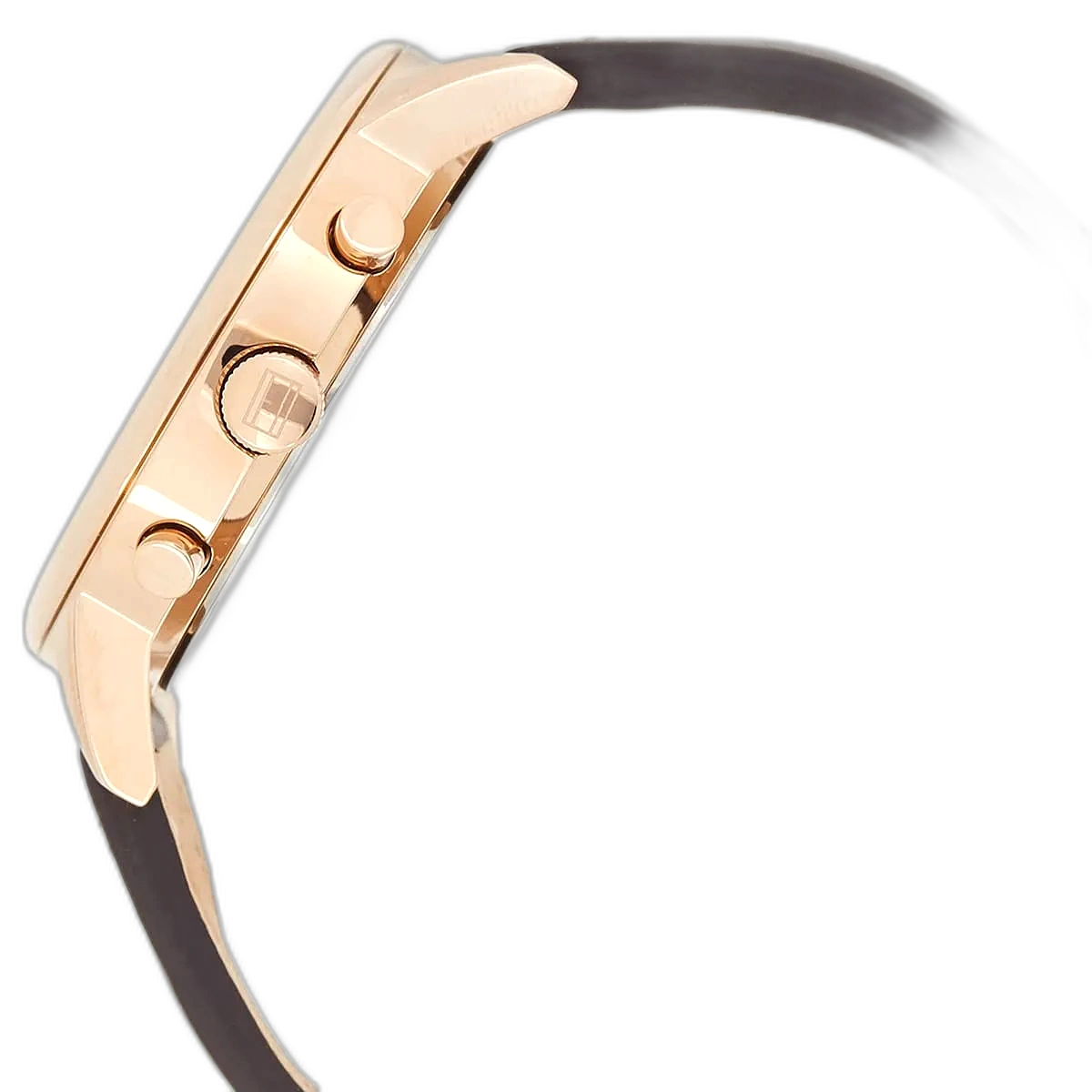 Step into the world of iconic American fashion with the **Tommy Hilfiger Kyle** watch, a perfect blend of timeless style and functional practicality. Renowned for its high-quality craftsmanship and distinctive designs, Tommy Hilfiger delivers with this authentic watch, reference **1791631** (Factory number TH.383.1.34.2725). With its powerful black dial and a classic brown genuine leather strap, this timepiece offers a sophisticated yet versatile look that is ideal for the modern man who values both style and durability. Its water resistance up to 50 meters ensures it can handle daily activities, including light swimming, though it is not recommended for deep diving or high-impact water sports. The watch features a multifunction quartz movement with three sub-dials, including day, date, and a 24-hour indicator, adding practicality and elegance to its dynamic design, making it a perfect companion for both professional and casual settings.
