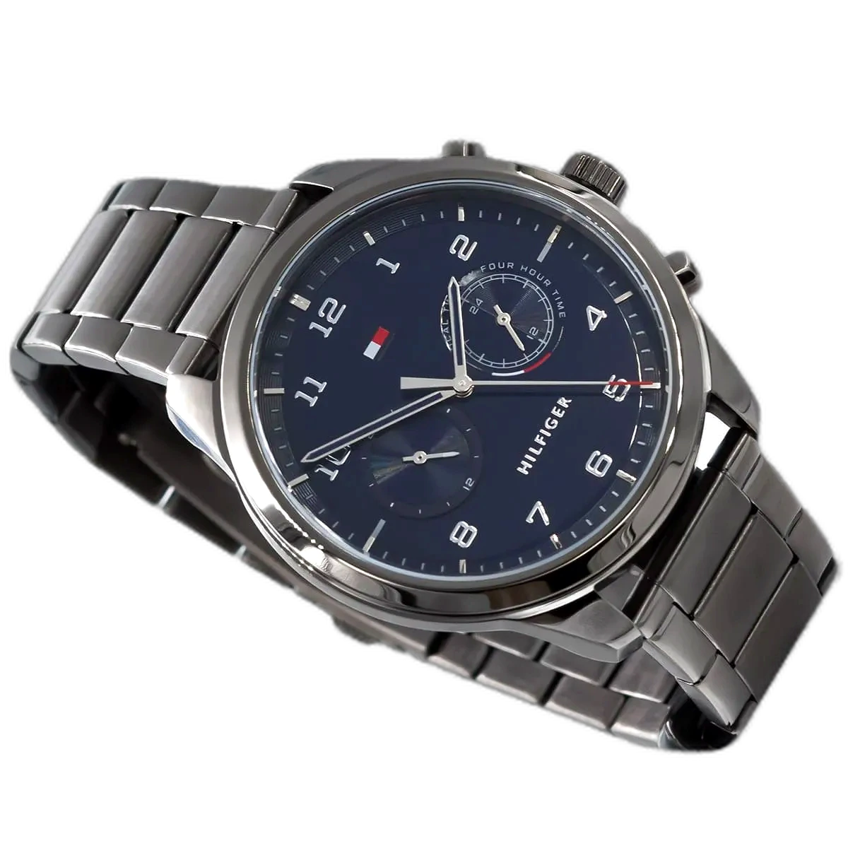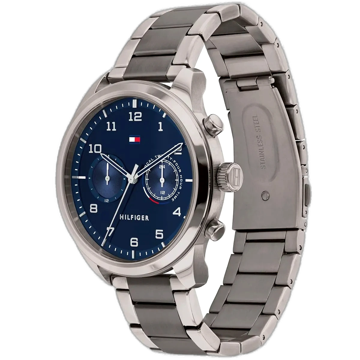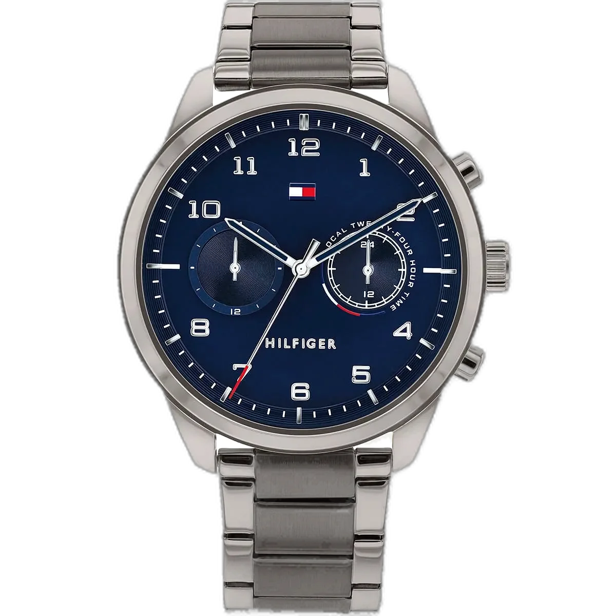 Embrace a sophisticated, modern look with this original Tommy Hilfiger watch. This authentic timepiece, reference 1791782 (Patrick model), features a striking blue dial and a sleek gray-toned stainless steel strap.