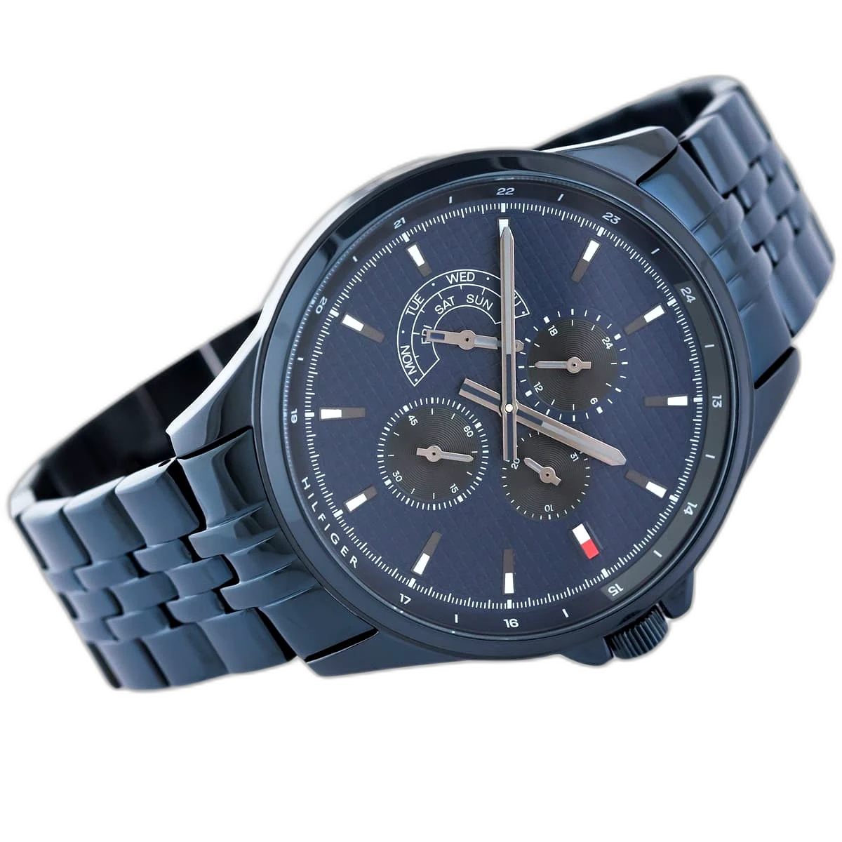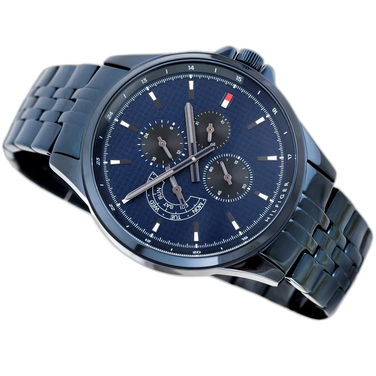 Make a bold statement with this original Tommy Hilfiger watch. This authentic timepiece, reference 1791618 (Shawn model), features a vibrant blue dial and a matching blue-toned stainless steel strap.